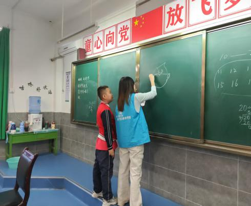 美术课堂上,志愿者王李睿琦与武晋慧精心筹备,与小朋友们展开了热烈的创意对话。她们耐心倾听孩子们的奇思妙想,用粉笔在黑板上勾勒出孩子们心中的世界,进而激发孩子们的创作热情。在志愿者的引导下,小朋友们纷纷拿起画笔,尽情挥洒,一幅幅充满童趣与创意的作品跃然纸上,赢得了彼此的高度认可。
