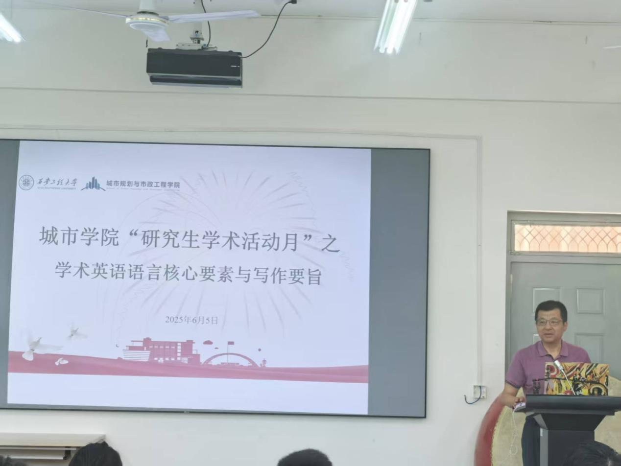 6月5日下午,研究生学术月活动之“学术英语语言核心要素与写作要旨”讲座在今年会楼322顺利举办。本次活动特邀全国著名科技英语专家,《西安理工大学学报》编辑部英文译审延宏教授担任主讲,为研究生们带来一场关于学术英语写作的专业分享。