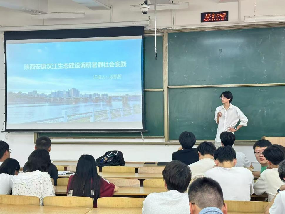 会上,2024年四支优秀暑期社会实践团队代表依次分享了他们的实践经验和成果。沙漠织绿实践团的李者同学讲述了团队在内蒙古鄂尔多斯沙漠边缘开展生态研究的经历。他们通过科学探索,为荒漠化防治提供了新思路,展现了青年学子在生态保护中的使命与担当。汉江生态建设调研实践团的段凯哲同学分享了团队在陕西安康汉江流域的调研成果。他们通过水质监测和生态评估,为“母亲河”的保护贡献了专业力量,彰显了青年在生态文明建设中的重要作用。“光影拾遗,探寻洋县皮影戏”实践团的车龙吉同学介绍了团队在汉中洋县挖掘和传播皮影文化的实践历程。他们通过举办展览和宣讲活动,让非遗文化焕发新生,体现了青年在文化传承中的创新活力。“乡村振兴·青春笃行”实践团的赵志聪同学讲述了团队在陕西紫阳县助力乡村振兴的实践故事。他们从产业调研到公益课堂,用实际行动为乡村发展注入青春能量,展现了青年在乡村振兴中的实干精神。