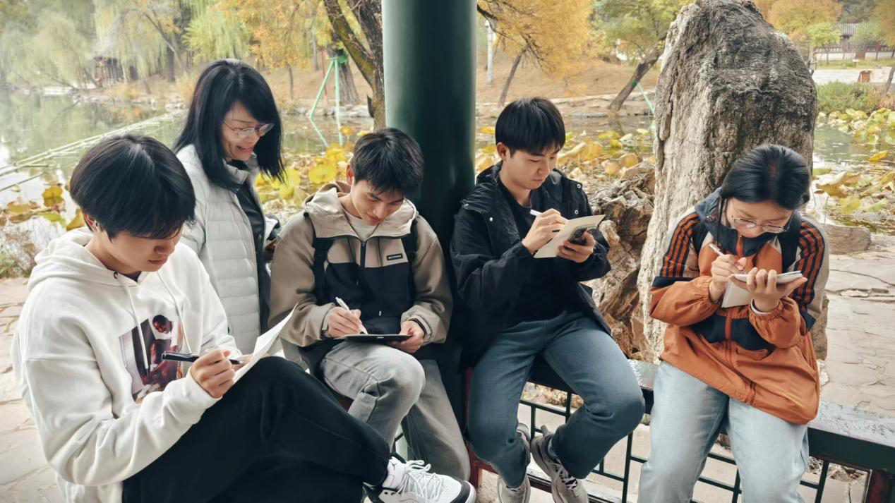 考察期间,学生们深入探索了圆明园的各大景区,从宏伟壮观的宫殿建筑到精致典雅的园林小品,从波光粼粼的湖面到错落有致的假山亭台,每一处都留下了他们专注的身影。在专业教师的指导下,学生们运用所学,将所见所感内化于心。