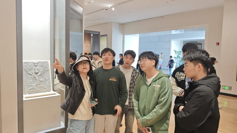 参观的过程中,老师以西馆为例给同学们解析设计逻辑:“‘让光线做设计’,而这座建筑向我们明确的展示,深入理解传统文化基因才是更永恒的光源。”老师进一步启发思考:“你们今天看到的不仅是展品,更是园林语言在当代设计叙事的表达。风景园林师应是空间的诗人,太湖石是你们的逗号,景墙是分节符,而光与影,就是最灵动的韵脚。”