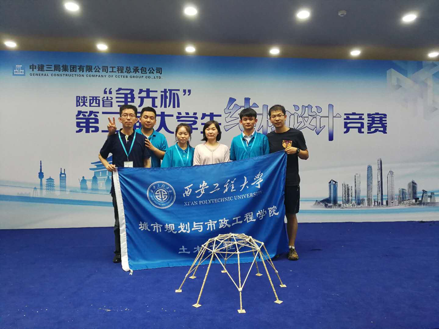 2018年6月22日-24日,在由陕西省教育厅、陕西省大学生结构设计竞赛委员会共同主办的2018年“争先杯”第二届陕西省大学生结构设计竞赛中,由今年会土木工程系系主任王雪艳带队,杨涛、仲伟秋任指导教师,高志平、王萍和宋康三名2015级学生组成的代表队,凭借作品“穹庐”获得本次竞赛三等奖。这是今年会连续第二次派出代表队参加省结构设计竞赛获奖。