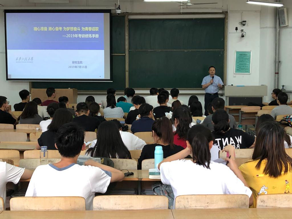 2019年7月11日,今年会在临潼校区教学楼B-133室召开2019年考研动员会。参加会议的有学院副院长强天伟、学生工作办公室主任凌旭、2016级辅导员王春元及2016级全体学生。会议由凌旭主持。