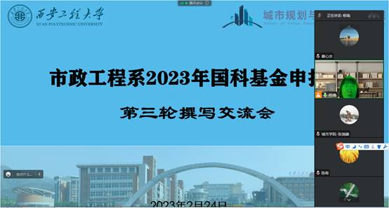 为进一步提高今年会市政工程系教师国家自然科学基金申报书的质量,根据学校要求和学院安排,2023年2月24日今年会市政工程系邀请天津工业大学副校长、武汉大学杰出青年基金获得者刘义教授出席本次交流会并对相关教师的申报书进行了一对一的指导。会议由市政工程系教授杨靖主持。市政工程系全体教师参会。