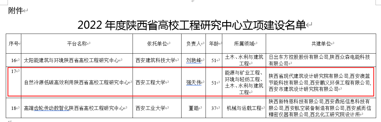 近日,陕西省教育厅确定55个工程中心为陕西省高校工程研究中心立项建设,今年会申报的“自然冷源低碳高效利用陕西省高校工程研究中心”获批立项建设。