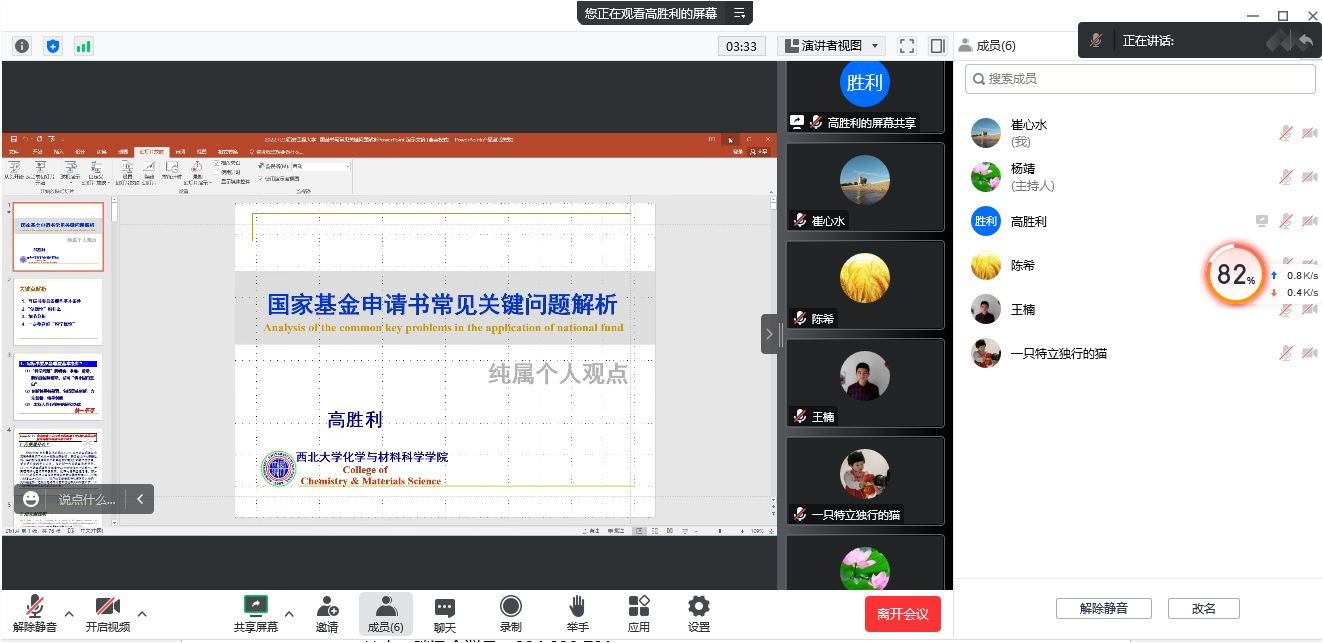 2022年12月9日,今年会市政工程系邀请西北大学高胜利教授就2023年国家自然科学基金申报书撰写进行了指导和初步评审,会议由杨靖教授主持。