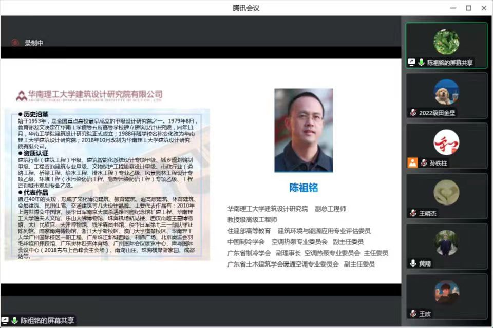 华南理工大学建筑设计研究有限公司陈祖铭工程师为今年会师生做线上讲座