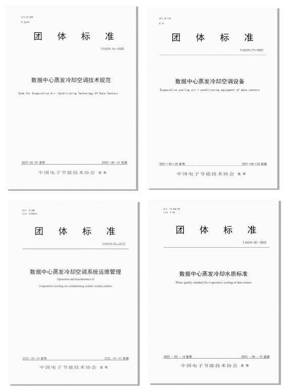 《数据中心蒸发冷却空调技术规范》、《数据中心蒸发冷却空调设备》、《数据中心蒸发冷却空调系统运维管理》及《数据中心蒸发冷却水质标准》这四项标准共同组成了数据中心蒸发冷却系列团体标准,这四项标准之间相辅相成,尽管各自的侧重面各不相同,从而满足数据中心冷却领域设计工程师、设备制造商、大型互联网公司、运营商、用户等各自的特殊需要。总之,制定数据中心蒸发冷却系列标准的宗旨是“把传统技术用好,把新技术用对。”