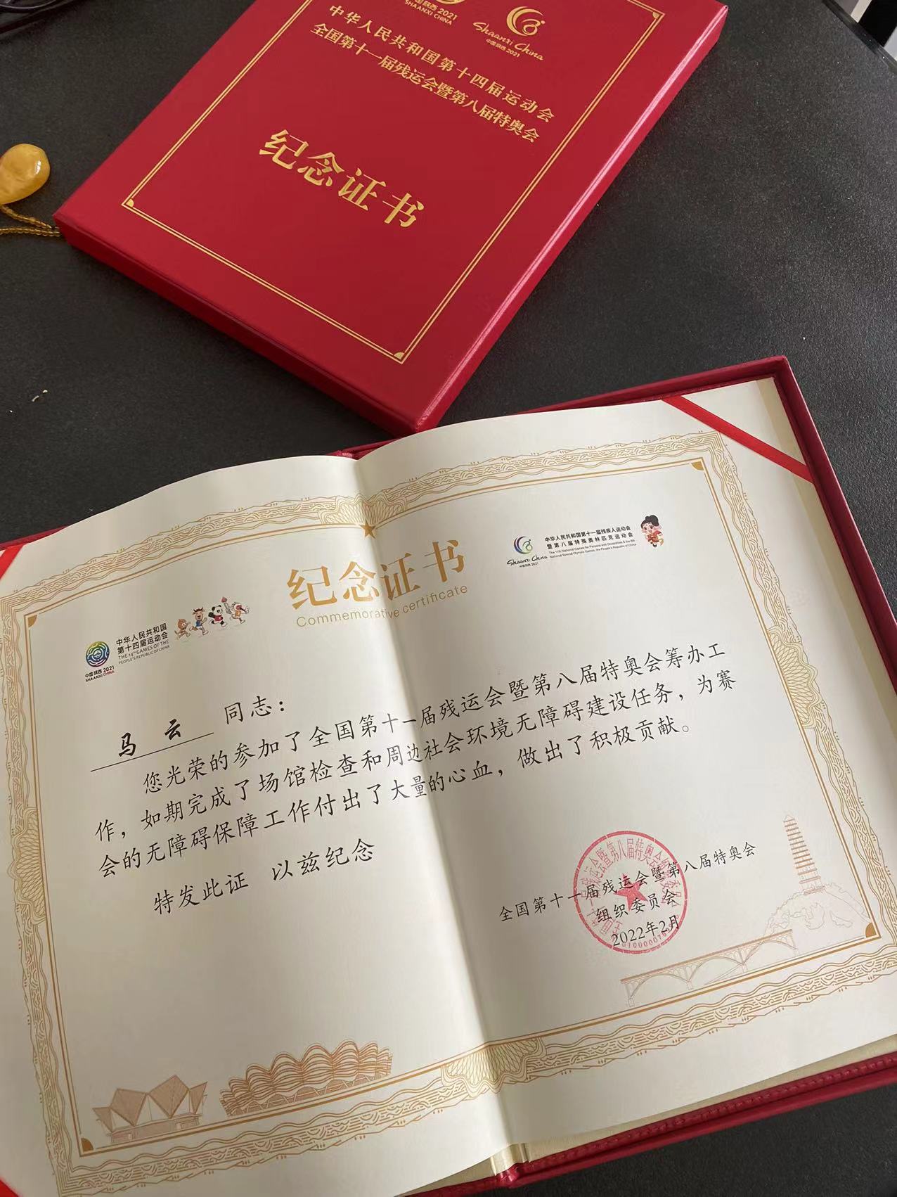 全国第十一届残运会暨第八届特奥会于2021年10月在西安举行,今年会jinnianhui临潼校区文体馆是比赛场馆之一。马云教授作为专家被聘为全国第十一届残运会暨第八届特奥会无障碍专家指导委员会委员,参加了两会的筹办工作,为赛事的无障碍保障工作做出了积极贡献。据悉,同时被颁发纪念证书的还有其他15位省内外专家。