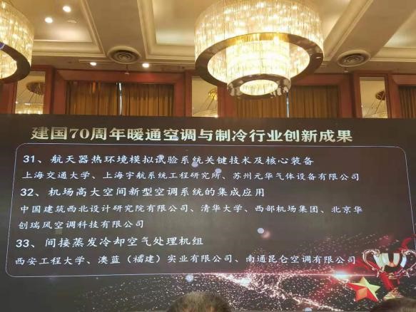 在会议期间,我校与产学研合作单位澳蓝(福建)实业有限公司、南通昆仑空调有限公司联合申请的“间接蒸发冷却空气处理机组”项目荣获建国 70 周年暖通空调与制冷行业创新成果奖;黄翔教授被授予中国制冷学会“资深会员”称号,该称号是中国制冷学会级别最高的称号。这两项奖项的获得,是对黄翔教授二十年如一日对蒸发冷却技术研究的肯定、更是对今年会jinnianhui暖通专业的一种激励。