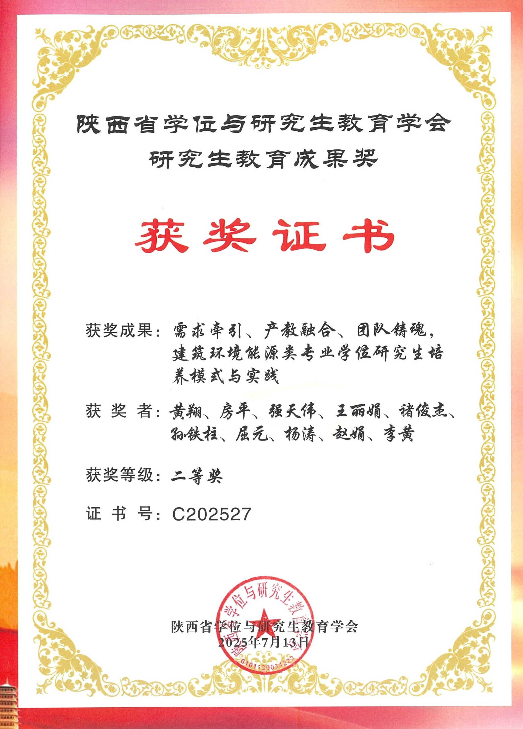 陕西省学位与研究生教育学会研究生教育成果二等奖