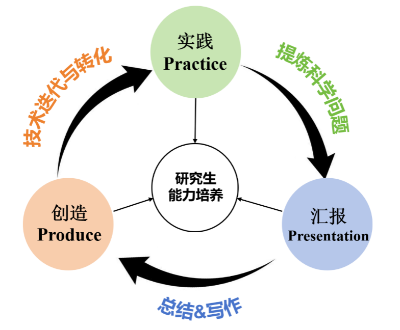 (2)提出“3P”教育理念,将“实践-汇报-创造”贯穿于研究生培养全过程。“实践”培养研究生动手能力和解决复杂工程问题能力。“汇报”培养研究生归纳总结和交流能力。“创造”提高升研究生的创新思维、逻辑思维和问题解决能力。三者有机结合,为行业培养技术创新型人才。