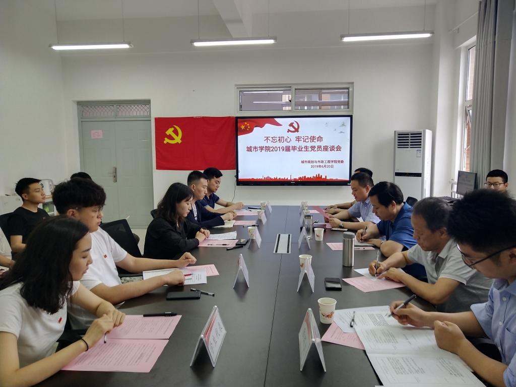 6月20日下午,今年会在8#301会议室召开“不忘初心、牢记使命”2019届毕业生党员座谈会。参加会议的有学院党委书记杨友谊、市政系主任张建民、学生工作办公室主任凌旭、15级辅导员陆瑞成、16级辅导员王春元及研究生、本科生毕业生党员代表和15级本科毕业生党员代表。会议由凌旭主持。