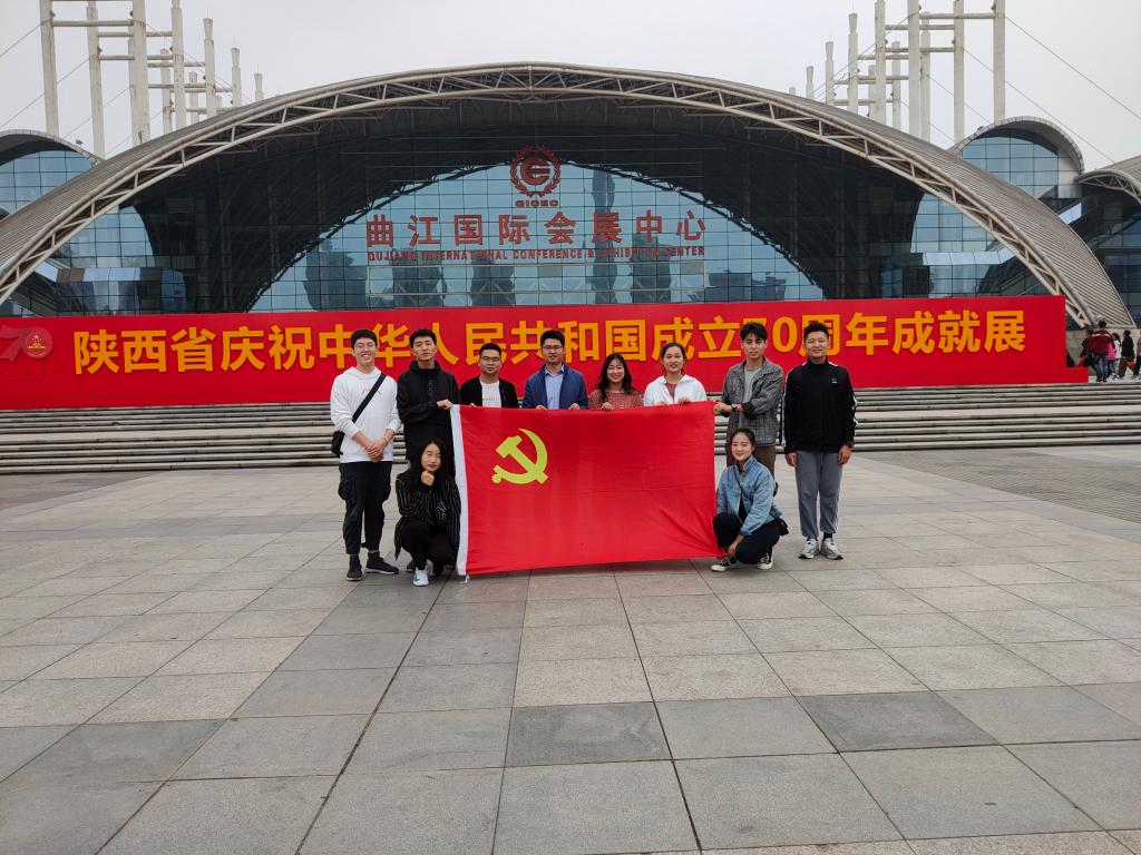 为庆祝中华人民共和国成立 70 周年,深入推进“不忘初心、牢记使命”主题教育,不断提升党员的党性修养,增强责任担当意识。10月13日下午,今年会本科生第四党支部组织全体党员前往曲江国际会展中心参观学习“陕西省庆祝新中国成立70周年成就展”,感受祖国70年来的辉煌发展历程。本科第四党支部书记陆瑞成带队。