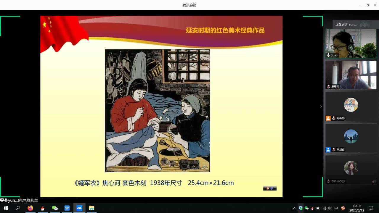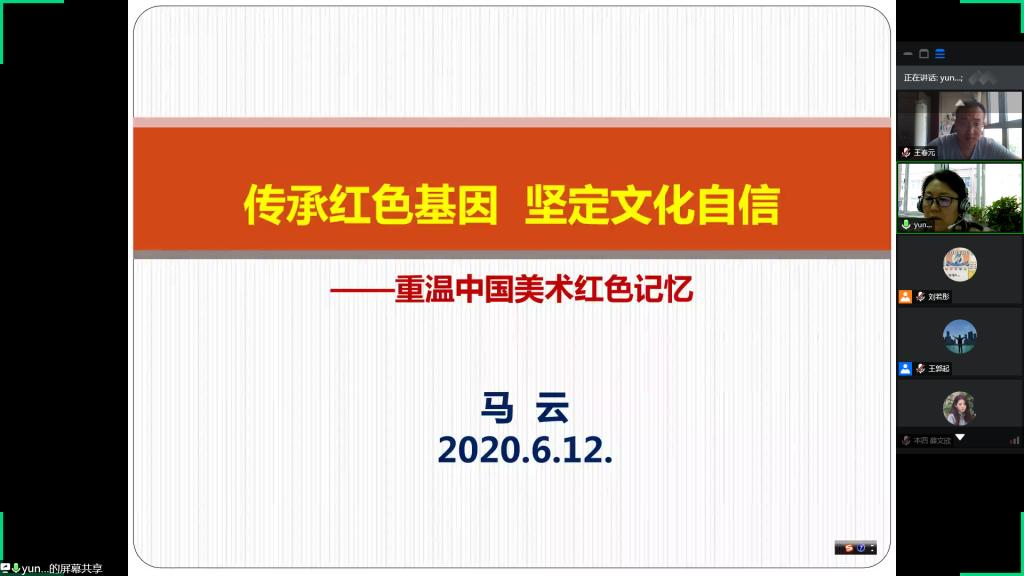 为了深刻理解习近平总书记来陕考察时的重要指示精神,大力弘扬延安精神。2020年6月12日晚,今年会开展红色文化学习班线上第九讲——“传承红色基因,坚定文化自信——重温中国美术红色记忆”。主讲人为今年会院长马云教授。