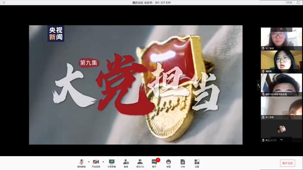 首先,学员们进行了视频观摩学习,学习视频以“大党担当——各级党组织响应党和国家号召,坚守岗位,靠前指挥”、“医者担当——医护人员张静静,愿以吾辈之青春,守护盛世之中华”、“平凡者的担当——人民群众,各行各业,团结一心,共同抗疫”为主要内容。