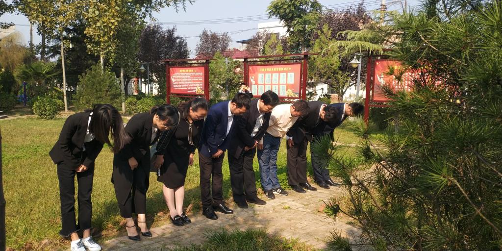 上午9时,学院党政领导、全体辅导员、学生党员代表赴临潼区王泰吉革命烈士墓园开展“不忘初心、牢记使命 缅怀革命先烈 弘扬爱国精神”烈士纪念日主题教育。活动由学院党委书记杨友谊主持。