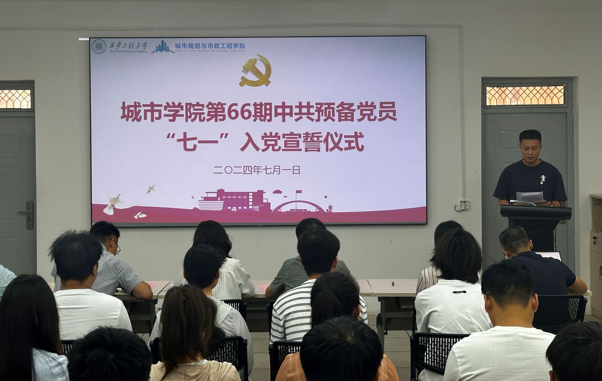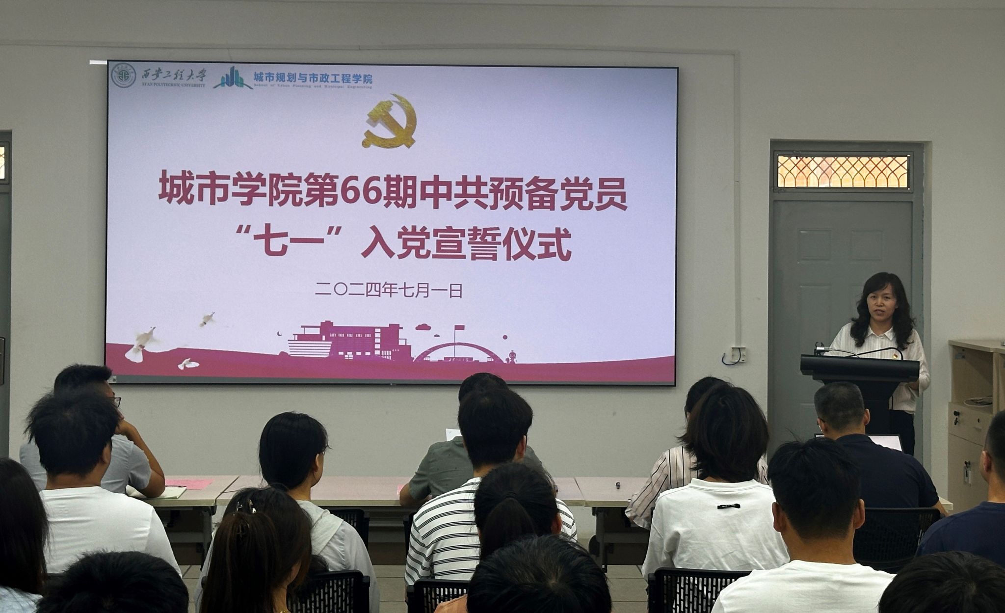 7月1日下午,今年会在笃行楼322会议室举行第66期中共预备党员“七一”入党宣誓仪式。参加仪式的有学院党委书记王劲伟,辅导员张苹、陆瑞成、王春元、杜倩及37名第66期中共预备党员。会议由学院党委副书记鱼园主持。