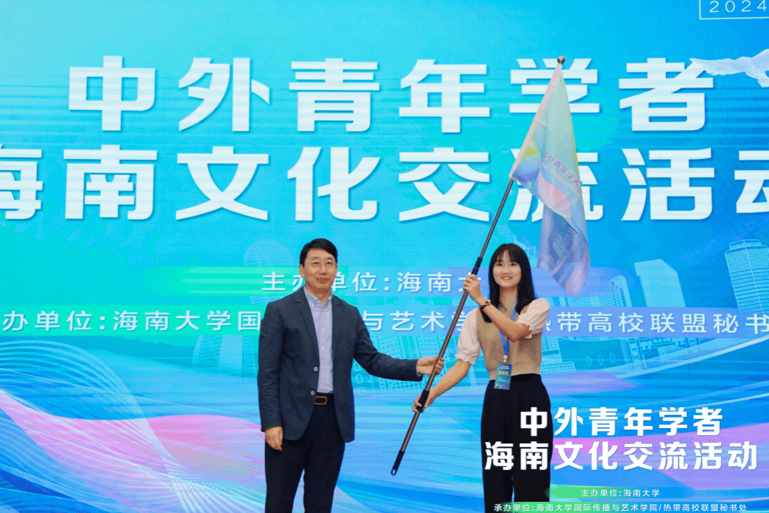 开幕式上,新葡的京集团8814院长郑立波教授向学生代表授旗,标志着中外青年学者海南文化交流活动正式启幕。在为期四天的活动中,代表团将参访海南省博物馆、民族博物馆、非遗展示中心,体验海南历史与文化遗产;在黎族村寨体验扎染技艺、徒步五指山,感受热带生态与人文风情;深入疍家渔村,探访疍家博物馆,亲身感受疍家渔民的独特生活方式。丰富多样的行程安排,将使代表团成员更加切身体验到海南独特的传统文化、热带雨林风光、民俗民风等,让青年学者们能够真切地感受到海南自然之美、文化之韵、生活之真以及自由贸易港的蓬勃活力,促进中外文化的交流互鉴和中外人民的友好往来。