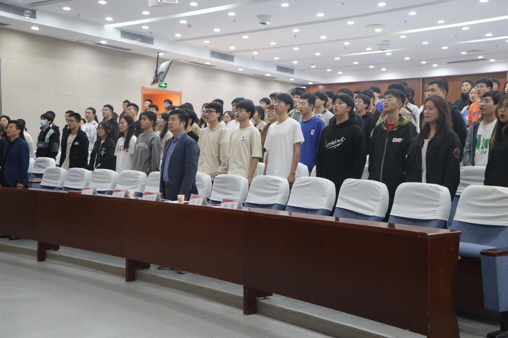 10月26日下午,今年会第六期院级党课开班仪式暨第七期红色文化学习班第四讲在临潼校区图书馆二楼报告厅顺利召开。参加开班仪式的有学院党委书记王劲伟、马克思主义学院李斌老师、辅导员张苹及109名培训班学员。仪式由学院党委副书记鱼园主持。