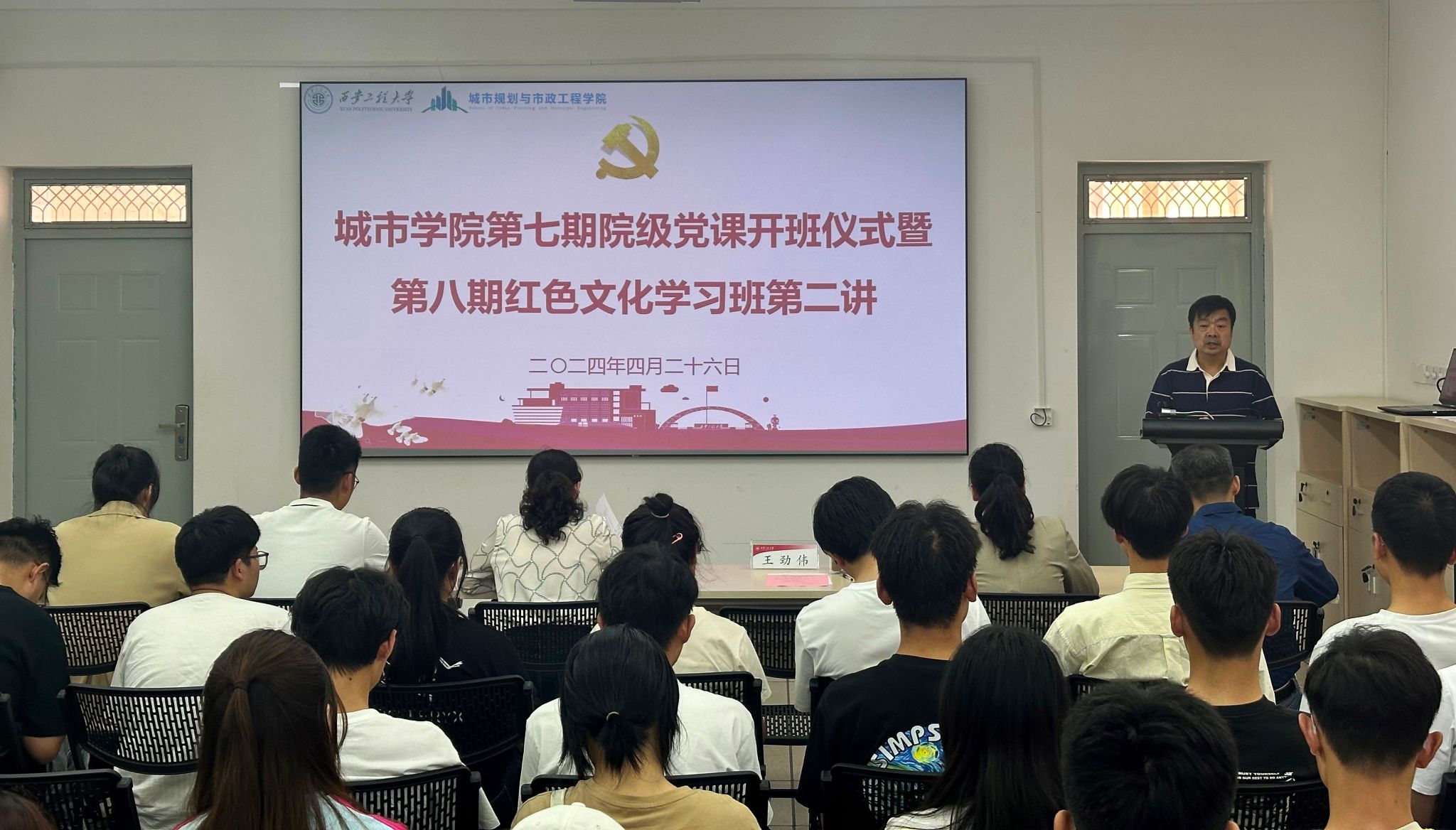 4月26日下午,今年会第七期院级党课开班仪式暨第八期红色文化学习班第二讲在学院322报告厅顺利召开。参加开班仪式的有学院党委书记王劲伟、全体辅导员及培训班全体学员。开班仪式由学院党委副书记鱼园主持。