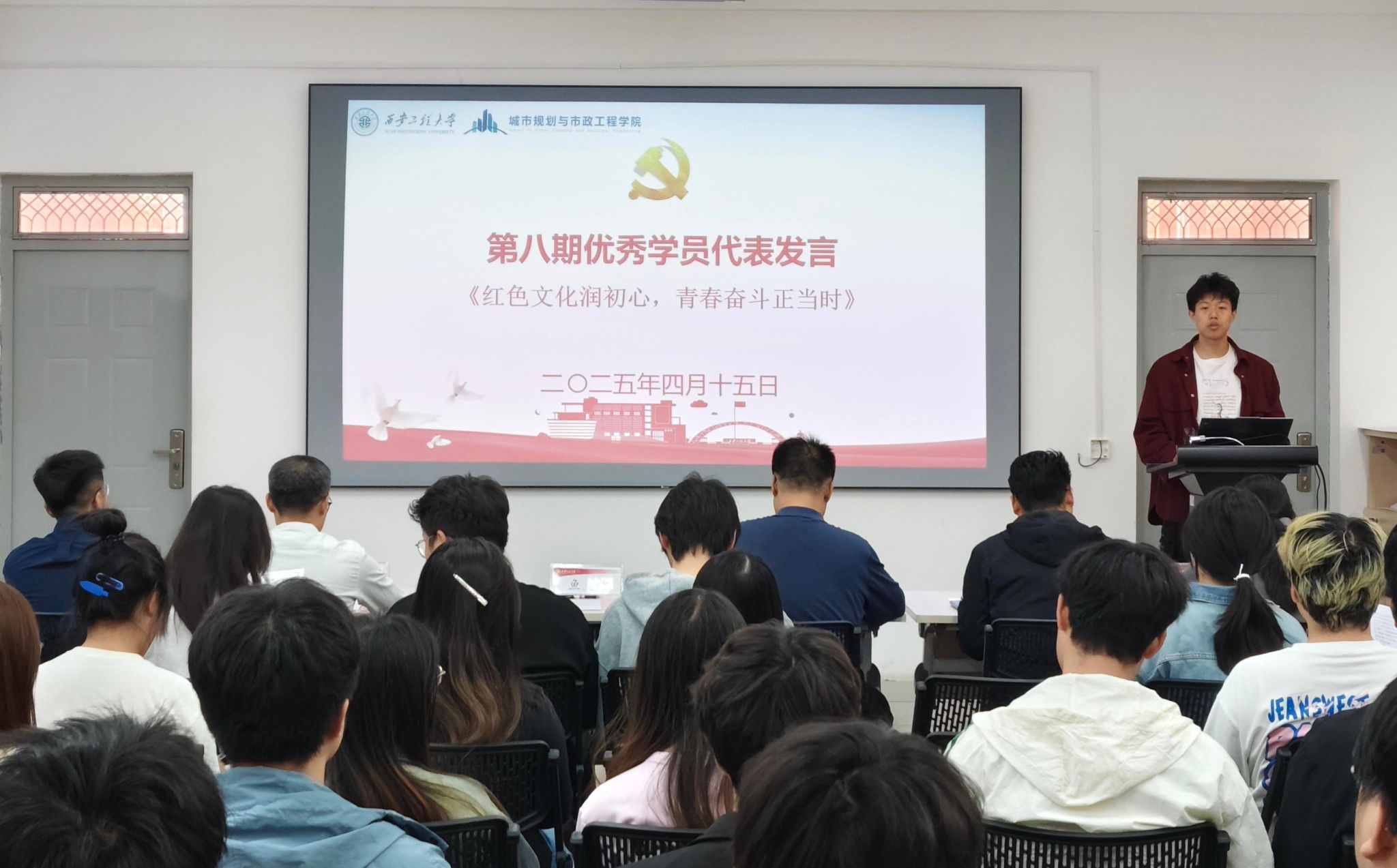 第八期学习班优秀学员代表、建筑环境与能源应用工程专业2023级2班翟逸飞同学分享了学习心得。他深情表示:“传承红色基因不是空谈口号,而是要将个人理想融入国家需求,在专业学习中锤炼过硬本领。作为新时代的工科学生,我们既要胸怀 ‘国之大者’,也要精通‘技之精者’,用扎实的专业知识服务国家建设,用创新思维传播红色文化,让红色精神在新时代焕发新的光彩。”