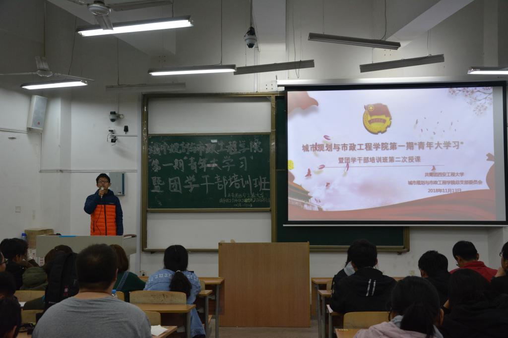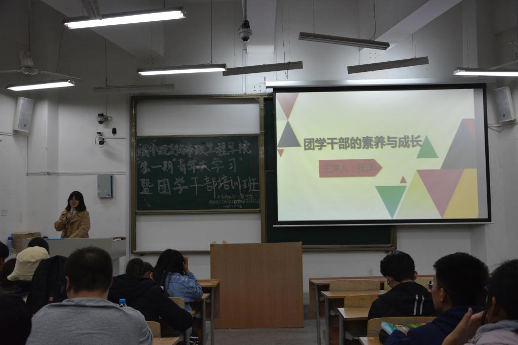 为了使同学们更加了解到新时代新中国对青年的要求,使同学们牢记青春使命,奋发务实进取,同时也为了培养更优秀的团学干部,提高团学干部的工作能力和水平,激发学生的创新意识和创造活力,使同学们更加了解校园文化提升团学干部的素养,使团学干部得到进一步成长,并对未来个人发展有一个合理的展望,2018年11月13日晚18时,共青团今年会jinnianhui今年会总支部委员会在教学楼B135举办今年会第一期“青年大学习”暨团学干部培训班第二次授课。参加本次课程的有今年会团总支副书记郭奇奇、副秘书长张洋,今年会学生会主席马嘉莹、副主席骆承睿以及今年会全体团学干部及18级各班班委。