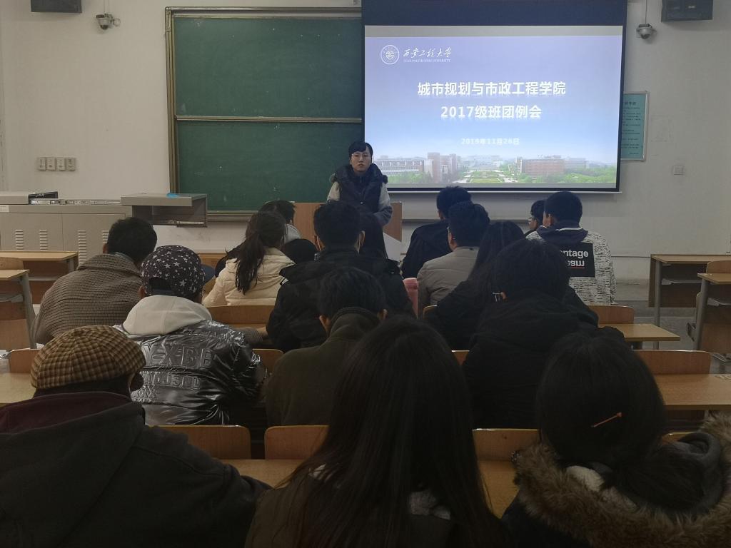 2019年11月26日中午,今年会在今年会jinnianhui临潼校区A-122和A-124教室分别召开17、16级第十四周班团例会。参加会议的有辅导员张苹、王春元,以及学院17、16级全体班长、团支书。