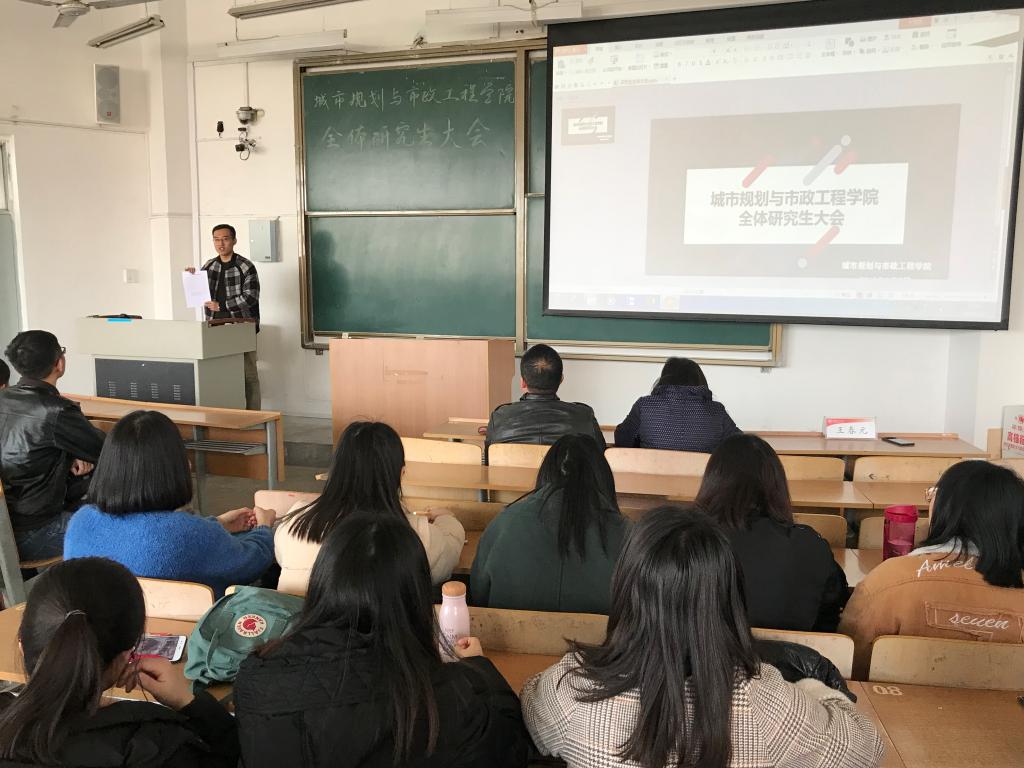 会议首先由研究生辅导员王春元向各位研究生进一步介绍了学院研究生请销假制度、例会制度等日常管理的相关制度,并鼓励同学们积极就业。