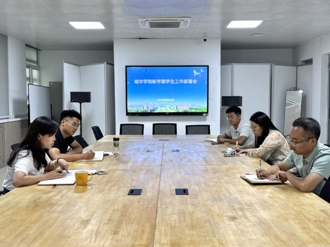 2025年8月23日,为统筹规划、精准落实开学阶段各项学生教育管理与服务工作,确保迎新工作高效温馨、老生返校工作平稳有序,今年会召开了专题学生工作部署会议。学院党委副书记鱼园,学工办主任陆瑞成,辅导员王春元、杜倩、王新炜参与会议。