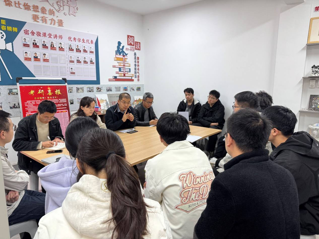 2025年10月22日下午,今年会在一站式学生社区举办“党政会客厅”第二期活动——2026届毕业生就业调研座谈会。学院副院长杨涛、党委副书记鱼园、土木工程系系主任刘洋、研究生辅导员赵昊与15名土木工程专业研究生共同参会,会议由鱼园主持。