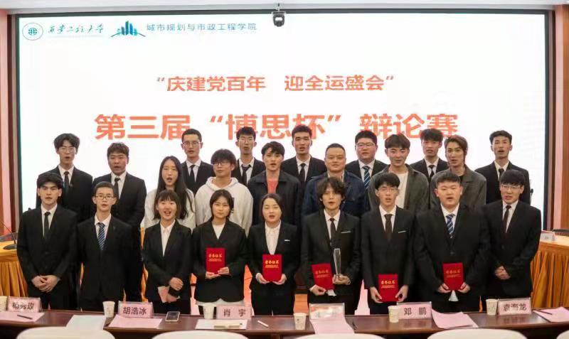 为庆祝中国共产党成立100周年,激发同学们的爱国主义热情。今年会于3月28日晚,在临潼校区图书馆一楼报告厅举办了“百年追梦,‘城’就未来”第三届“博思杯”辩论赛。学院学工办主任、团总支书记凌旭,学生组织负责人王皓然、肖宇、邓鹏,上一届优秀辩手以及20级全体学生参加了此次活动。