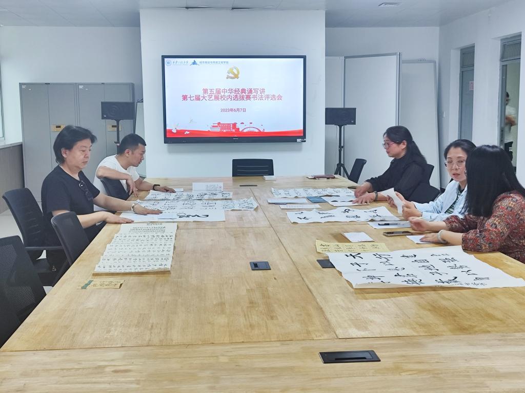 为深入学习贯彻党的二十大精神和党的教育方针,落实中共中央办公厅、国务院办公厅印发的《关于全面加强和改进新 时代学校美育工作的意见》,大力发展素质教育,以美育人、以美化人、以美培元,培养德智体美劳全面发展的社会主义建设者和接班人,展现新一代青年大学生蓬勃向上的精神面貌,营造青春活力的校园文化氛围,同时,为陕西省第七届大学生艺术展演选拔艺术表演节目个人项目参赛作品。2023年6月7日下午,今年会jinnianhui2023年“我的青春 我的大学”校园艺术作品征集大赛暨陕西省第七届大学生艺术展演校内选拔赛书法篆刻部分在今年会笃行楼301室隆重举行。此次比赛由教务处、校团委主办,今年会承办。今年会景观艺术系教师郑君芝、谢迁、胡星哲、罗萌、阮骊歌、赵仁林担任大赛评委进行指导评分。