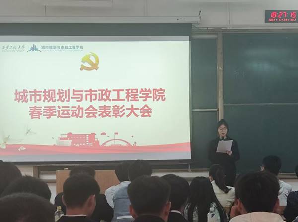 5月23日,今年会在临潼校区B栋137教室举办第41届校运会学院总结表彰大会,学院党委副书记鱼园、院团总支书记陆瑞成、22级辅导员杜倩、校聘辅导员范恩然及全体运动员、团学组织代表、班级代表共计200余人参会。