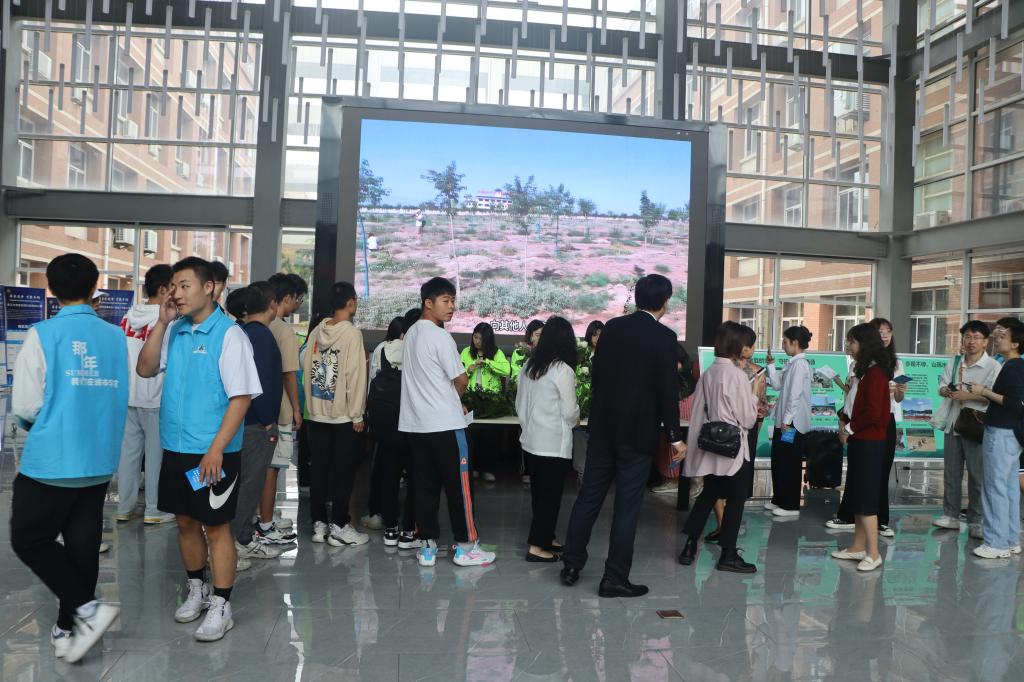 本次展示活动以专家组进校调研今年会“沙漠织绿”项目入围生态环境部全国小额资助项目为契机,集合学校部分环保公益社团、相关专业以及本次暑期社会实践环保主题实践团队,从双碳实践、沙漠织绿、绿水青山、环境育人、课程美育五个模块,邀请今年会黄翔教授蒸发冷却团队、黄河流域高质量发展中心房平教授延河水调研团队、景观系郑君芝教授插花习作课程美育演示、我校获批省级重点环保协会的社团组织等,集中展示我校师生在环境保护方面做出的努力。