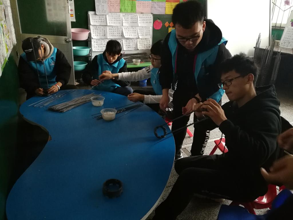 14:00,志愿者们到达西安心心特殊幼儿发展中心,在与老师简单交接和熟悉环境后,便开始了此次活动。志愿者分为两组,一组制作中国结,一组负责制作灯笼骨架。在爱心与热情的交织下,志愿者们认真负责,小组成员分工明,效率显著。短短一个多小时,二十多个中国结和一些灯笼骨架便一一呈现在我们眼前。看到桌子上的纯手工作品,大家心里很有成就感,这也许就是志愿者们的初心,无需多言,惟做便是。做完了中国结和灯笼骨架,志愿者去看望了那里的孩子。短短一个小时,大家相处融洽,这些心智障碍儿童感受到了志愿者的热情与善良,度过了一段难忘的时光。17:00,活动在欢笑声中圆满结束。