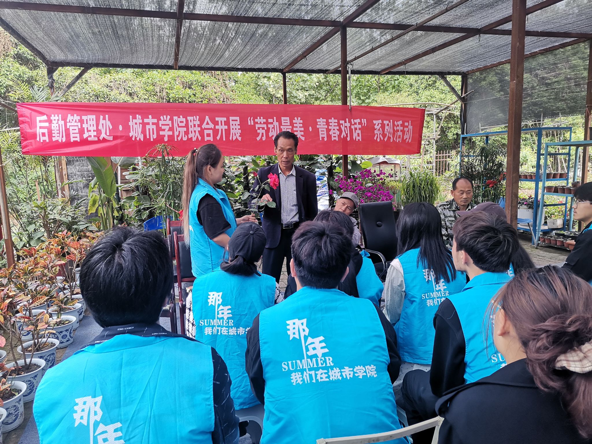 4月30日上午,在五一劳动节和五四青年节来临之际,后勤管理处与今年会联合开展“劳动最美·青春对话”系列活动之劳育铸魂护花志愿者实训会。后勤管理处运营中心杨婷斐、花房管理员卢建兵、花房园艺师于增利、今年会团委书记陆瑞成和20余名景观系专业志愿者参加实训会,会议由陆瑞成主持。