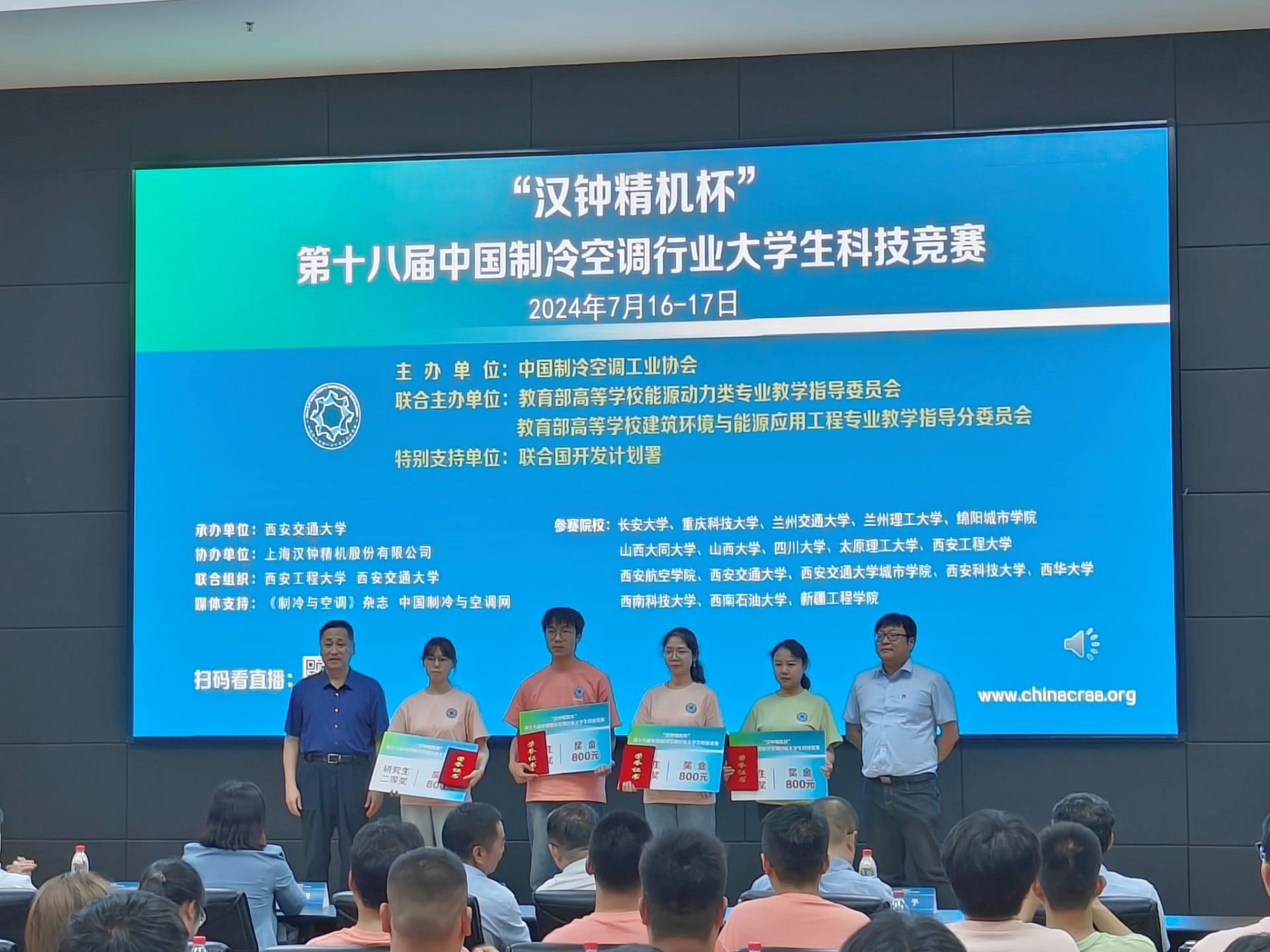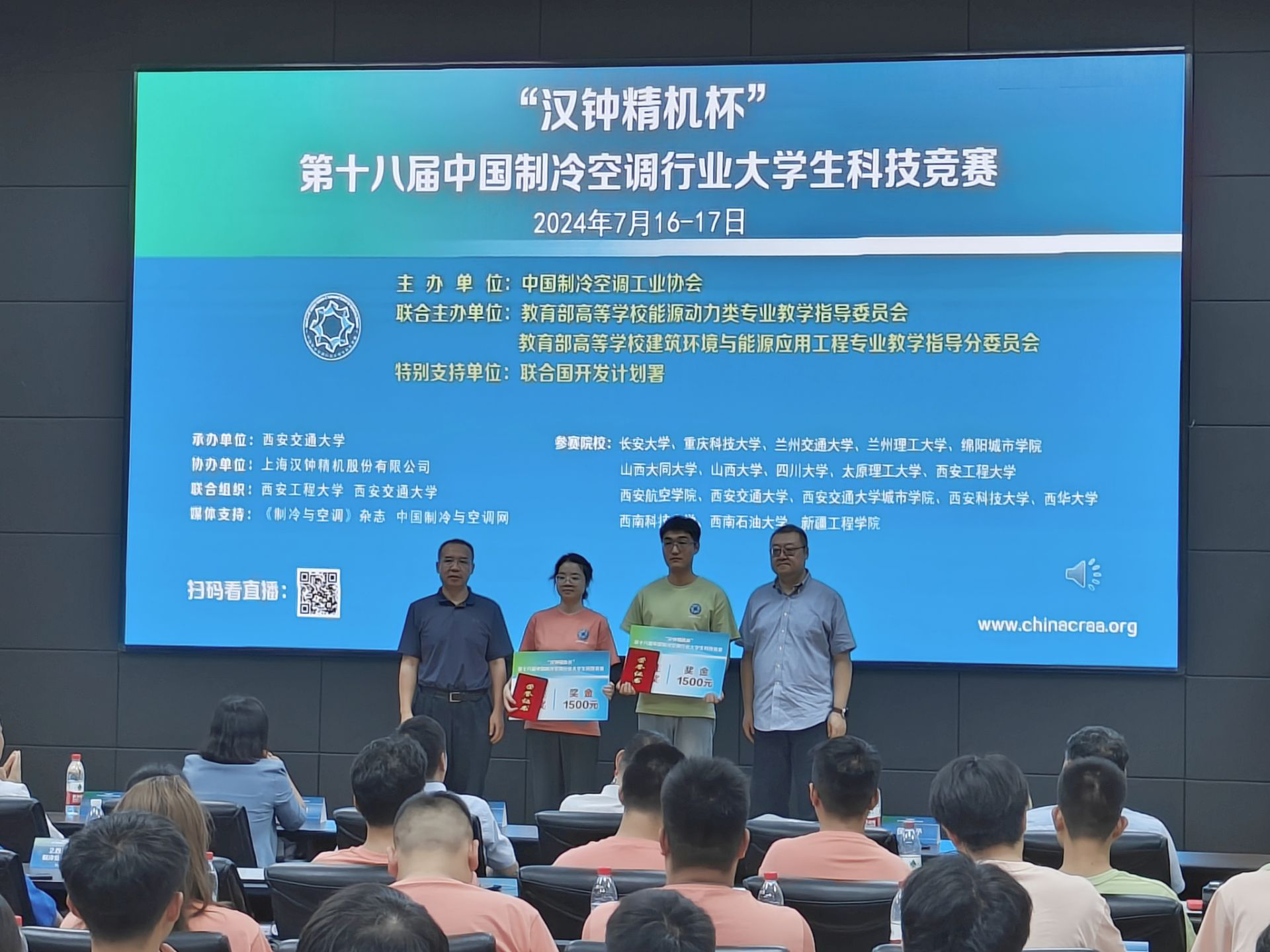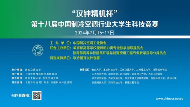 2024年7月16日至17日,由中国制冷空调工业协会主办,教育部高等学校能源动力类专业教学指导委员会和教育部高等学校建筑环境与能源应用工程专业教学指导分委员会联合主办,联合国开发计划署特别支持,西安交通大学承办,上海汉钟精机股份有限公司冠名协办的“汉钟精机杯”第十八届中国制冷空调行业大学生科技竞赛决赛在西安交通大学兴庆校区隆重举办,本次大赛主题为“新型工业化的制冷空调技术”。参与本次竞赛的院校有今年会jinnianhui、兰州交通大学、长安大学、山西大学、西安科技大学等18所高校。