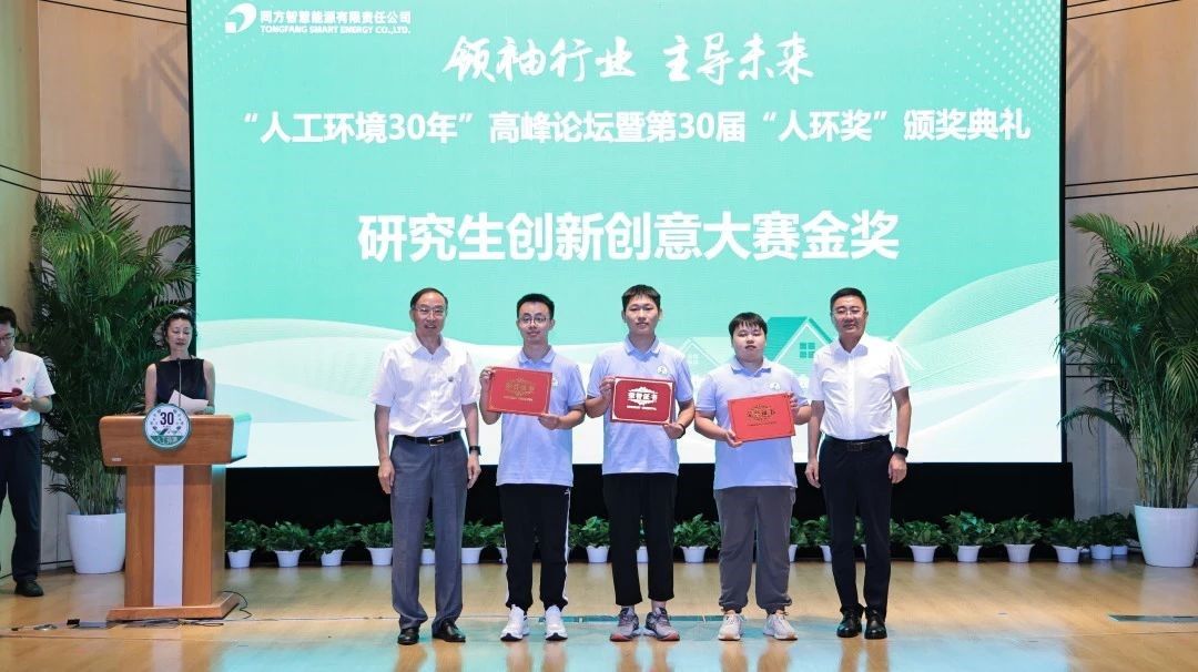 颁奖仪式于“人工环境30年”高峰论坛暨第30届“人环奖”颁奖典礼进行,北京市建筑设计研究院原院长、顾问总工程师吴德绳也莅临现场参加活动,并给参赛同学寄语“从无字处读书,与有肝胆人共事”。中国工程院院士、清华大学江亿教授,教育部建环专业教指委主任、清华大学朱颖心教授,全国工程勘察设计大师、中国勘察设计协会建筑环境与能源应用分会名誉会长罗继杰,全国工程勘察设计大师、中国建筑科学研究院首席科学家、中国建筑科学研究院建筑环境与能源研究院院长徐伟,中国制冷空调工业协会副理事长兼秘书长张朝晖,中国建筑节能协会副会长、原北京建筑大学环能学院院长李德英,同方股份党委委员、总工程师秦绪忠,新紫光集团党委书记范新相继发表演讲,畅谈人工环境学科在推动实现国家节能减排方面的实践成果与未来展望,勉励参赛学生再接再厉,为人工环境学科发展贡献自己的力量。
