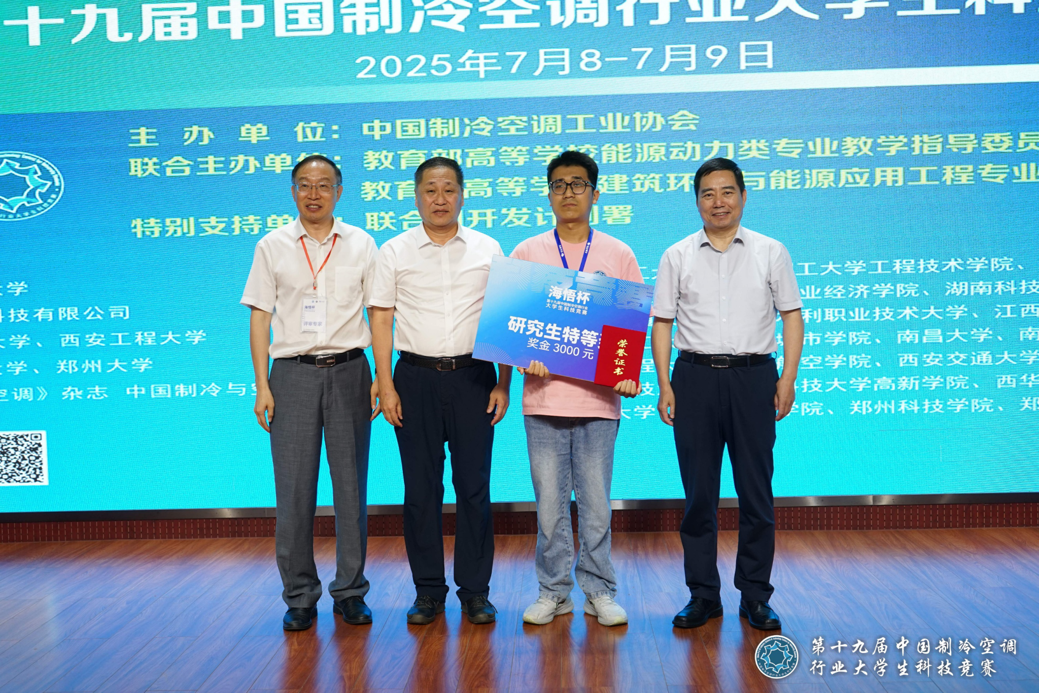 在闭幕式及颁奖仪式上河南科技大学校党委副书记海然教授、中国制冷空调工业协会白俊文秘书长、广东海悟科技有限公司吕东建副总裁先后为大家进行致辞;随后,由北京工业大学马国远教授带大家回眸了2025年第十九届中国制冷空调行业大学生科技竞赛,与会专家领导对会议的精心组织和圆满顺利给予高度评价。