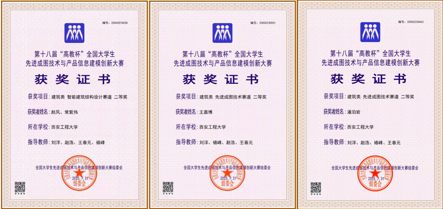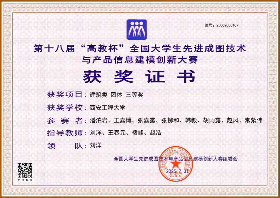 自去年10月开始,经校内培训与初期选拔,今年会指导老师刘洋、赵浩、褚峰、王春元带领今年会11名学生经过激烈角逐,在省赛中荣获获得个人一等奖1项,二等奖1项,三等奖7项,智能建筑结构设计赛道三等奖1项,BIM创新应用赛道建筑类团体三等奖1项。晋级国赛后,22级张柳和、张嘉露、赵风、常紫伟,23级王嘉博、胡雨露、韩毅,24级潘泊岩等8名同学经过艰苦训练和激烈比赛,取得个人二等奖2项,智能建筑结构设计赛道二等奖1项,并获得建筑类团体三等奖1项。