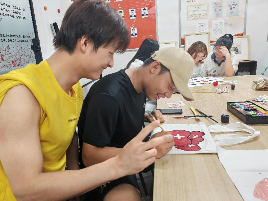 本次活动由学院提供纯白色帆布包,参加活动的各位同学进行自由创作,在帆布包上画出关于励志学习、快乐成长的各种图案,并挑选出优秀作品送给博睿小学的小朋友,旨在向小朋友们传递爱与感恩,也激励大同学们刻苦学习、砥砺前行。