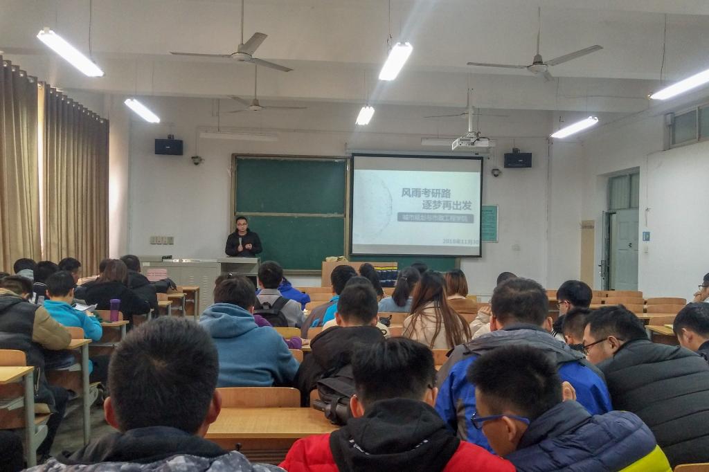 今年会第一届“丝路新青年”学风建设“风雨考研路,逐梦再出发”主题宣讲会于2018年11月27日、30日在A栋教学楼122室召开。“丝路新青年”学风建设宣讲团成员艾煜智、贺泽坤、16级给排水科学与工程专业、建筑环境与能源应用工程专业全体同学及部分17、18级同学参加了此次活动。
