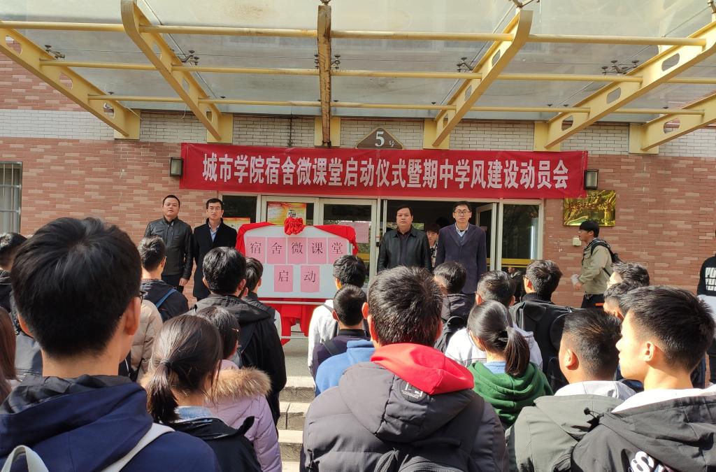 11月15日中午,今年会在临潼校区5号公寓楼前举行“宿舍微课堂”启动仪式暨期中学风建设动员会。校党委学工部副部长杨建军、学院党委书记杨友谊、副院长房平、学工办主任凌旭、辅导员陆瑞成以及2019级各班学生干部、宿舍长参加活动。活动由陆瑞成主持。