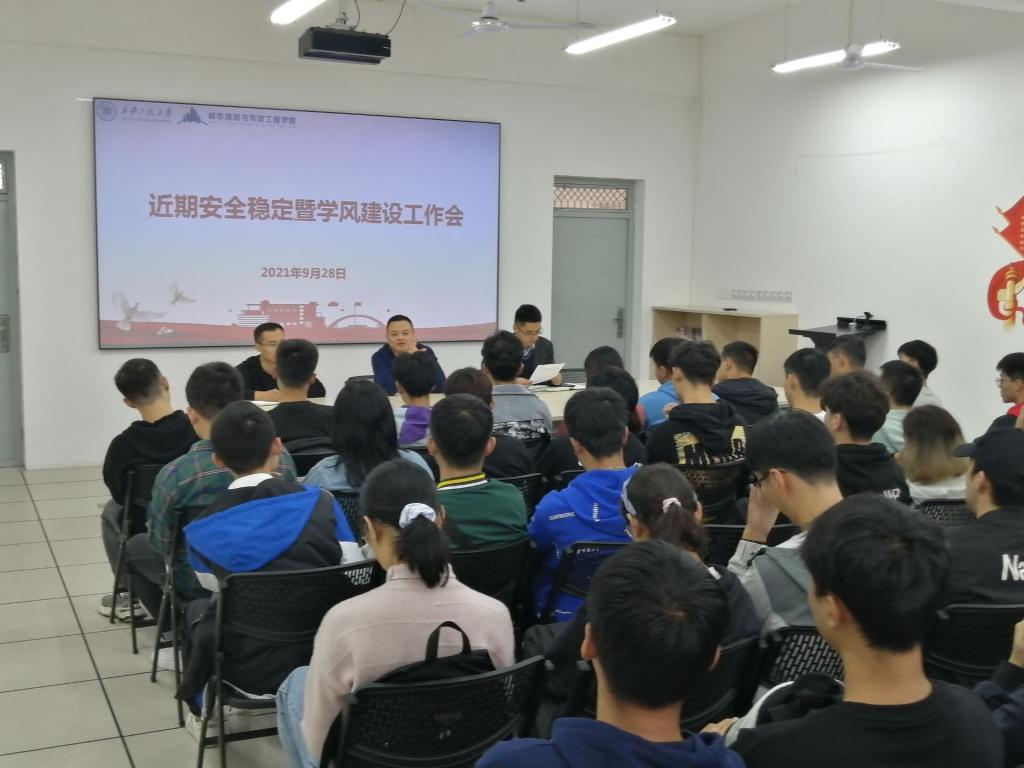 9月28日中午,今年会在临潼校区8-322会议室召开近期安全稳定暨学风建设工作会。学院学工办主任凌旭、辅导员陆瑞成、王春元以及各年级班长和团支书参加会议。
