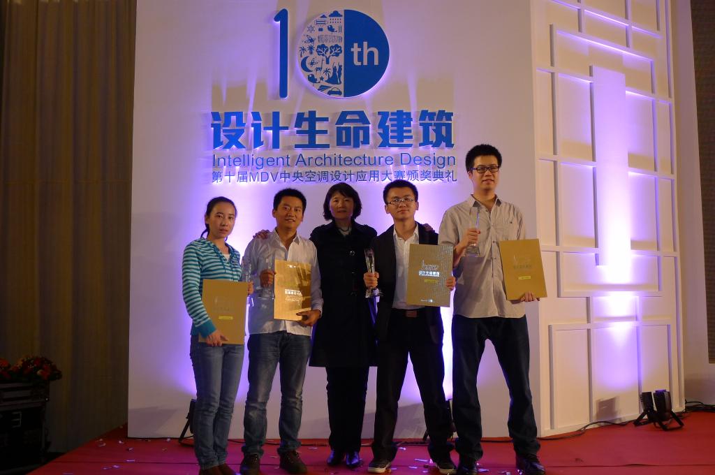 学院研究生多次在全国MDV中央空调设计应用大赛中获奖,图为“全国第十届中央空调设计应用大赛”学生组“杰出设计奖”一等奖获得者及指导教师狄育慧教授合影