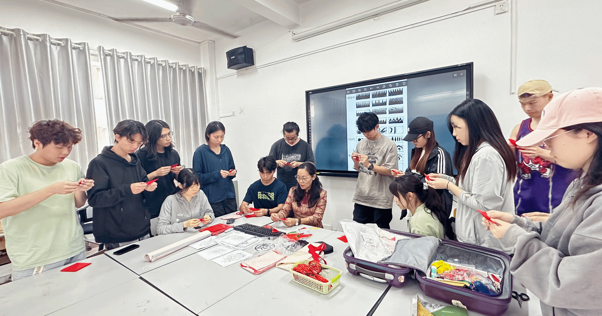 2025年3月26日下午,海南省剪纸学会会长、省级工艺美术大师、非遗传承人黄海桃应邀走入新葡京官网设计系大三课程—《旅游产品设计与制作》的课堂,与课程主讲教师张哲共同探索了剪纸艺术与海南文旅设计的融合路径。课程以“非遗活化+设计创新”为核心,通过理论讲授、技艺示范与创作实践,引导学生挖掘剪纸语言的地域表达潜力,现场气氛热烈。