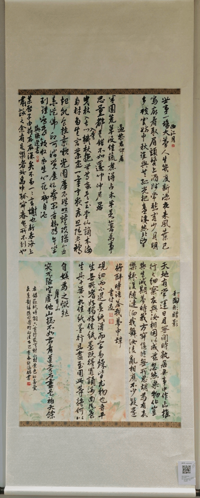 据悉,本次展览设置四个主题展区,共展出67件教师与学生作品,围绕“传统书法”“创意书法”“实验水墨”三大主题,体现艺术传承与创新的脉络。