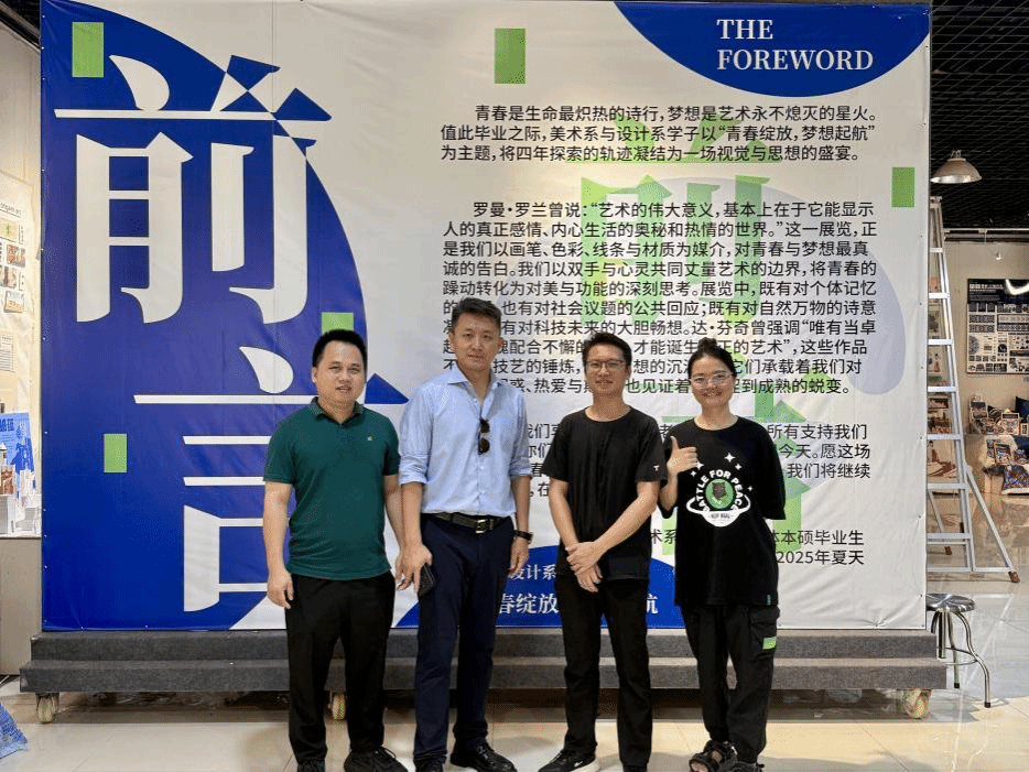 6月5日下午,海口市旅游商品与装备协会会长郗志强、秘书长陈勇周及海流文化创意设计有限公司负责人陈明智一行参观新葡京官网2025届设计系本科毕业展。副院长元志东、实验室与设备管理中心孙焱老师、综合办于东平老师、设计系方星星老师陪同参观并讲解。