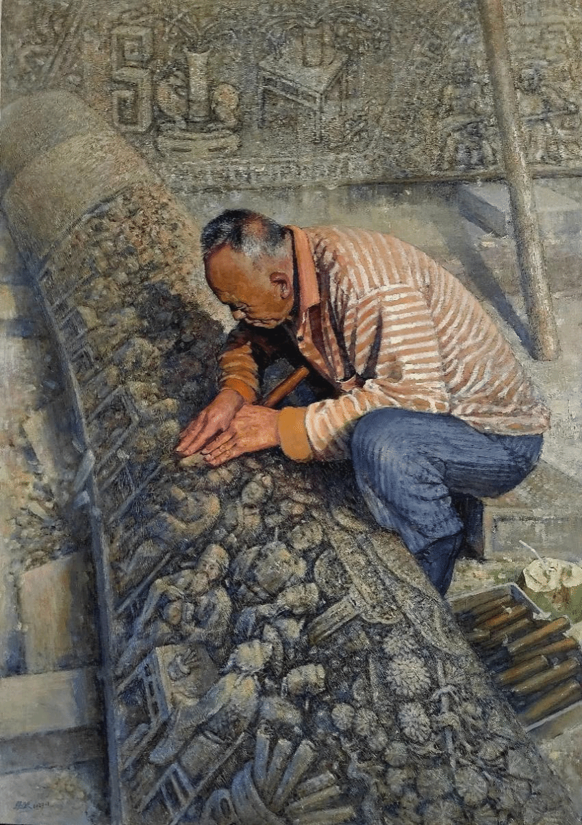 2024年7月18日上午,第十四届全国美术作品展览油画作品展览在上海中华艺术宫开幕,新葡京官网退休教师易武教授创作的油画作品《木艺人生》参展。
